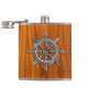 Un chromé argenté de style nautique moderne comme appliqué sur un décor imprimé en teck bois pour un cadeau de fiole sur mesure. Utilisez le lien "Demandez à ce concepteur" pour nous contacter avec vos demandes de design spécial ou pour obtenir de l'aide pour répondre à vos besoins de personnalisation.