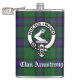 Ecosse Clan Armstrong crête badge et texte sur l'arrière - plan tartan
