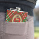 Clan Scott badge crête entouré d'une sangle et boucle sur le tartan rouge. Texte personnalisé.