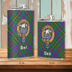 Clan Bois crête badge entouré d'une courroie et boucle sur tartan. Texte personnalisé.