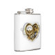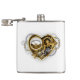 Coeur steampunk mécanique, volumétrique, avec manomètre, acier et or sur arrière - plan blanc. Style Steampunk.