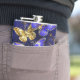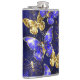 Composition de luxueux papillons saphir et bijoux en or sur arrière - plan à texture bleue.