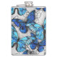 Composition verticale de papillons morpho réalistes, bleus et blancs sur arrière - plan texturé gris. Papillon bleu morpho.