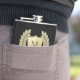 Icône couronne et bouclier. Couleur arrière - plan personnalisée. Monogramme et texte personnalisés.