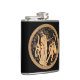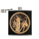 6 oz. flacon noir vinyle avec une image noir et or de Dionysos, dieu grec de la vinification et de la folie rituelle, et les satyres. Dans la mythologie grecque, un satyr est une créature en bois avec la tête et le corps d'un homme et les oreilles, les cornes et les jambes d'une chèvre. Les Satyrs ont été caractérisés comme aimant la lécherie et l'humour ivre. Voir la bocal à bonbons, tasse à expresso, tasse, lanceur, plaque en papier, théière et dessous de verre. Voir l'ensemble de la collection Toga Flask dans le FOOD/BEV | Section Plats. Note : L'option d'affichage avant non ouvert a été photographiée par Zazzle avec un léger inclinaison, de sorte que l'image apparaît hors centre. L'option d'affichage avant ouverte, cependant, a été photographié correctement. Ici l'image est centrée. L'image est également centrée sur l'option d'affichage "in situ".
