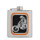 Une descente en VTT et cavalier. La moto est dessinée en gris, utilisant la technique "espace blanc" sur un arrière - plan noir. Le coureur descend sur la colline et se voit donner une perspective par la roue avant de la moto en regardant plus grand (plus près) que l'arrière.