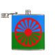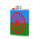 Drapeau officiel roumain du voyageur tzigane vert et bleu représentant la terre et le ciel avec une roue de wagon rouge, représentant le voyage. Personnalisez cette conception en supprimant ou en modifiant le texte. Visitez le MAGASIN OCONNART pour obtenir des produits assortis et des cadeaux plus gitans.
