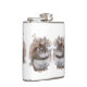 Cette jolie fiole de hanche présente d'adorables écureuils rouges dans la neige blanche et moelleuse. Leur fourrure est brune et blanche.