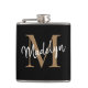 Flacon de nom de script stylisé à monogramme noir or élégant. Personnalisez facilement ce flacon élégant moderne avec votre monogramme et votre nom personnalisés.