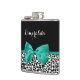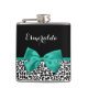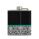 Personnalisez en ajoutant le nom de n'importe quelle fille à ce empreinte de léopard noir et blanc à la mode 6 oz. fiole avec un ruban vert émeraude ceinturé de poutres, attaché à un joli arc. Ce design poster de animal élégant est une image imprimée à plat et ne contient pas de ruban.