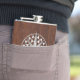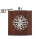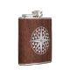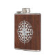 Une applique moderne de style nautique en chrome argenté sur un décor imprimé en bois d'acajou mouillé pour un beau cadeau de flasque personnalisé.