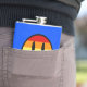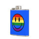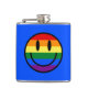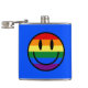 Cette oeuvre colorée présente un visage souriant arc-en-ciel.