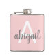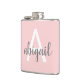 Clair Chic Rosé Rose Rose Gris (Gris) Monogramme Flask. Cette fiole peut être customisée pour inclure votre nom initial et prénom. Le flacon rose pâle est idéal pour un anniversaire, un cadeau de mariage ou une fête de bachelorette.
