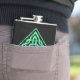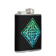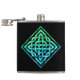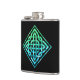Une fiole de liqueur d'un noeud celtique bleu-vert en forme de diamant avec bordure contre un arrière - plan noir.