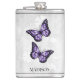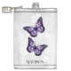 Profitez de vos boissons alcoolisées préférées à tout moment avec un flacon à base de vinyle de papillon violet. Le design flacon comprend une paire de papillons vibrants reposant sur une vigne florale blanche contre un arrière - plan gris clair. Autres cadeaux disponibles avec ce design aussi.