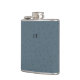 Joli flacon avec des graphismes d'un look de cuir d'autruche bleu. Personnalisez le monogramme de trois lettres, sur le devant pour répondre à vos besoins. Idée cadeau idéal pour n'importe quel type et surtout grand comme un cadeau de mariage pour les groomsmen.