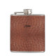 Joli flacon avec des graphismes d'un riche look de cuir d'autruche brun. Personnalisez le monogramme noir de trois lettres, sur le devant pour répondre à vos besoins. Idée cadeau idéal pour n'importe quel type et surtout grand comme un cadeau de mariage pour les groomsmen.