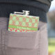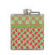 Un amusant Hip Flask pour personnaliser, avec deux motifs de style campagnard, mixer'n'match de dragons rouges mignons sur un chèque vert et blanc en vichy arrière - plan.