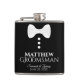 Ces flacons d'alcool amusants sont conçus spécialement pour les groomsmen. Ils présentent un design amusant d'une cravate blanche avec trois boutons sur un arrière - plan noir, donnant l'idée d'un smoking. Le texte dit "Groomsman" et a un espace pour son nom ainsi que le couple et la date mariages. Parfait service ou cadeau, et une excellente façon de le remercier d'être dans votre fête de mariage.