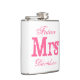Futur personnalisé Mme mariage rose boit un flacon pour que la mariée soit avec un texte vintage élégant. Couleur rose et blanche personnalisable. mariage cool / bachelorette idée cadeau de fête pour mariée et demoiselle d'honneur. Personnalisez-le. Alcool / Boire présent. Couleur arrière - plan personnalisée.