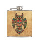 Les caractéristiques de conception ce uniques un Haida ont inspiré le hibou. Le motif indigène dépeint une conception tribale de hibou qui est composée des lignes d'écoulement et des formes élégantes. Les ailes de l'oiseau nocturne ont étendu des deux côtés du motif avec ses plumes de queue accrochant vers le bas ci-dessous. Les textures approximatives et les grandes fissures donne le motif et le regard âgé et porté. Ce beau motif est une représentation élégante de cette créature sage et merveilleuse de vol.