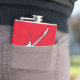 Flacon de hanche avec guitare et arrière - plan rouge. Vous pouvez customiser le nom ou ajouter n'importe quel texte.