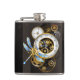 Antique cadran avec or et laiton, décoré de libellules mécaniques sur arrière - plan brun rayé. Du steampunk.