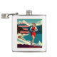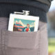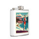 Pendant que vous êtes en train de courir, il nettoie la cuisine à la maison, vous avez gagné le jeu. Ce design amusant montre une femme à l'allure désuète courant dans les montagnes dans le style d'une affiche de voyage vintage.