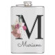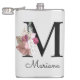 Flacon initial M brodé rose boho floral, cadeau idéal pour une soirée de célibataire ou autre célébration de filles amusante. Personnalisé avec la lettre M et un nom.