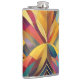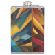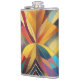 Au centre, convergent un ensemble dynamique de formes géométriques et audacieuses, formant une composition symétrique et colorée. La pièce utilise une variété de teintes, allant des jaunes chauds et des oranges aux bleus et violets cool.