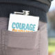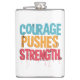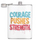 Le design comporte le texte en gras "Courage pousse la force dans une police dynamique de style graffit. Les mondes sont restitués dans une palette dynamique et multicolore, créant une composition visuellement frappante et énergique.