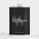 Ajoutez une touche personnelle à votre mariage avec un flacon de toiletteurs personnalisé. Ce flacon contient le nom personnalisé du marionnettiste en style de police de script classique blanc avec des détails mariages en style de police serif classique blanc et monogramme en style de police serif classique gris clair en arrière - plan, sur arrière - plan noir. Aussi parfait pour le meilleur homme, père de la mariée et plus.