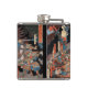Ce flacon de hanche comporte une reproduction d'un triptyque japonais d'impression de bois de graveur, Oeyama Shutendoji. Créé en 1858 par le maître Utagawa Yoshitsuya (aka Ichieisai Yoshitsuya) d'ukiyo-e, cette scène comporte la tête géante du Roi Shutendōji d'oni d'Oeyama ne combattant avec Minamoto samouraï célèbre aucun Yorimitsu et ses alliés.