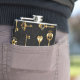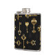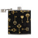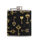 Seamless pattern of antique, gold and silhouette keys on black background.