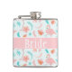 Avec un bel arrière - plan bleu aux flamants roses, il y a aussi des fleurs et des plumes roses et bleues qui décorent ce design. Au milieu "Mariée" est écrit sur un arrière - plan rose. Achetez votre fiole de mariée dès aujourd'hui ! Oeuvre Arrière - plan créée par : AMBillustrations http://www.etsy.com/shop/AMBillustrations/