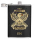 Cette fiole unique présente l'image d'un aigle chauve américain avec des armes croisées, des étoiles et un texte qui dit "Je suis un VETERAN. Mon serment n'expire jamais". Sous l'image et le texte est votre monogramme en or correspondant.
