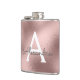 Flacon élégant à monogramme à paillettes et feuille de rose doré. Ce flacon peut être personnalisé avec votre initiale et votre prénom. Le flacon rose gold est parfait pour une fête d'anniversaire ou un enterrement de vie de jeune fille.
