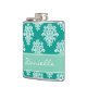 Un motif damassé floral féminin en turquoise et blanc orné d'une bande de ruban d'aqua. Personnalisez avec votre nom et votre monogramme. Cet article fait un beau cadeau pour les demoiselles d'honneur, anniversaires et plus.