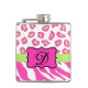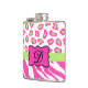 Flasques Monogramme de peau de léopard blanc rose chaud