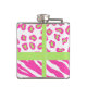 Soyez le succès de la fête avec cette fiole de boisson élégante personnalisée avec un monogramme initial et dans les couleurs vives rose chaud. Les rayures colorées de zèbre et les peaux de léopard ou de guépard pour le design graphique est l'une des tendances les plus chaudes de l'art et du design, et est extrêmement populaire de la mode à la décoration maison et sont parfaits pour quelqu'un qui aime la couleur rose. Ce zèbre et motif empreinte de léopard sophistiqué rose et blanc brillant est disponible en plusieurs combinaisons de couleurs. Un emblème rose chaud fuchsia crée une zone de personnalisation avec votre monogramme. Ceci est entièrement personnalisable. Ce flacon fait un grand cadeau !