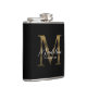 Simple Chic Script Metallic Black Gold Monogram Flask