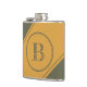 Ce flacon comporte un double cercle centré et une lettre initiale en vert mousse sur un arrière - plan jaune mangue. Personnalisez ou supprimez la lettre ou la personnaliser initiale à l'aide de l'outil de conception pour sélectionner la couleur, la taille et le style de police que vous préférez. Une idée de cadeau sur mesure pour un 21e anniversaire.