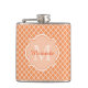 Ajoutez un vibe moderne sophistiqué à votre style personnel avec ce motif orange et blanc à la mode de quatrefoil 6 onces. flacon avec un monogramme encadré élégant. Personnalisez cette conception élégante en ajoutant votre initiale nommée et décorée d'un monogramme.