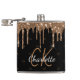 Un fond noir classique avec des gouttes de pailleur dorées fausses, aspect de peinture qui coule. Personnalisez et ajoutez un nom et des initiales de monogramme. Le nom est écrit avec un style de lettre manuscrite moderne doré. Vos initiales de monogramme en tant que motif de fond. Lettres blanches et dorées. Parfait pour les anniversaires, les enterrements de vie de jeune fille et les soirées entre filles !