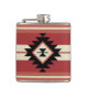 Aztec ethnic bohemian pattern with geometrical shapes in red, orange, grey and black colors on striped background