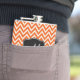 Les contrastes lumineux orange, blanc et noir dans un motif en zigzag de chevron font de ce design flacon un choix agréable. Avec son monogramme personnalisé, vous pouvez modifier l'exemple de monogramme avec votre texte désiré pour un cadeau personnalisé ou pour vous-même.
