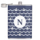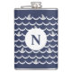 Une mer de ailerons de requin nageant sur un arrière - plan bleu marine avec monogramme.