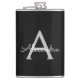 Flasques Noir Argent moderne Script Girl Monogramme Nom