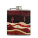 Paysage Abstrait d'un désert avec cactus saguaro, brosse à gomme, collines et étoiles dans les tons rouge, pourpre, beige et texture audacieuse.