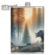 Cette image captivante présente un majestueux ours noir qui se fraye un chemin à travers un arbre tombé, encadré par une cathédrale de verdure verdoyante. Alors que la lumière dorée du lever du soleil pénètre dans la brume matinale, elle jette une lumière douce et éthérée qui donne vie à la forêt.